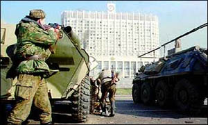 In September 1993, Yeltsin dissolved Parliament and called for new elections. Vice President Rutskoi and his supporters refused to obey Yeltsin's orders. On October 2, they constructed barricades and blocked traffic on Moscow's main streets. On October 3, a mob of parliament supporters stormed the police line around the White House territory and seized the Moscow City Mayor offices. On the morning of October 4, several elite divisions of Russian military forces decided to support Yeltsin. Tanks rolled up to the White House at around 5 am. Firing began at 7 am and the assault continued throughout the day. At 5pm, special troops entered the White House and arrested Rutskoi and several leaders of Parliament.